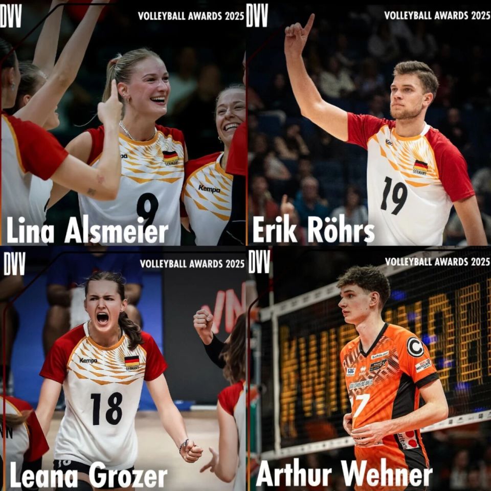 近日,2025年德国排球年度盛典“排球奖”正式揭晓,本次评选由德国排球协会通过线上票选选出年度大奖得主,4个组别合计20名候选人,共计超过7000名球迷参与投票,创下历史新高,运动员获奖情况如下: